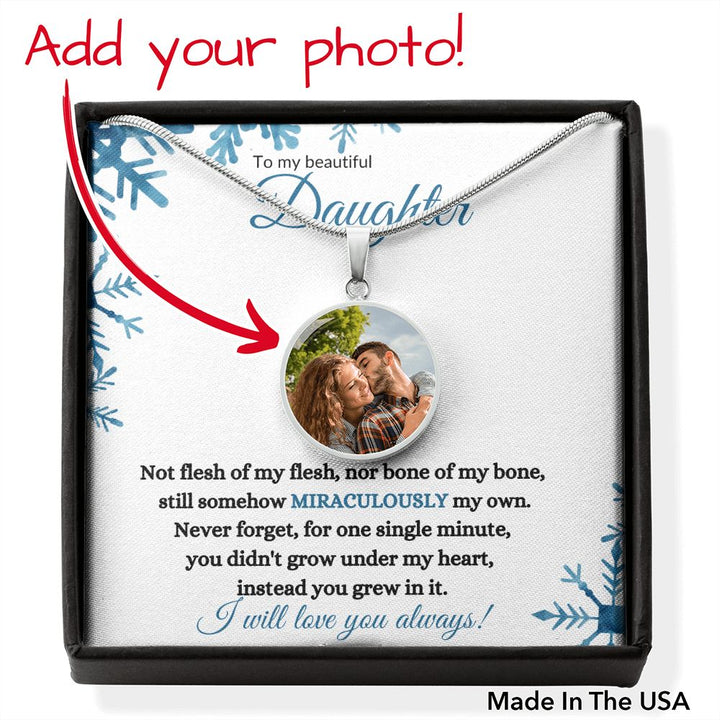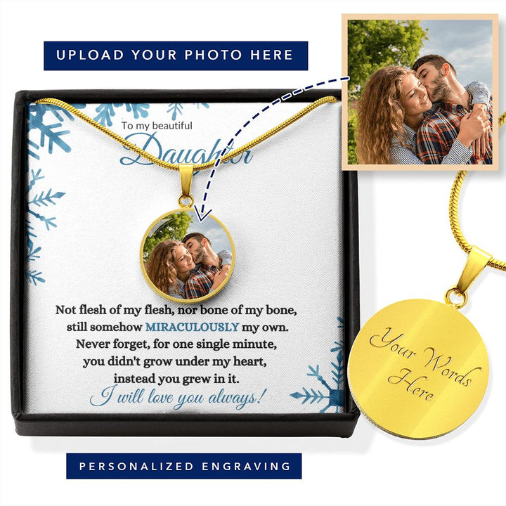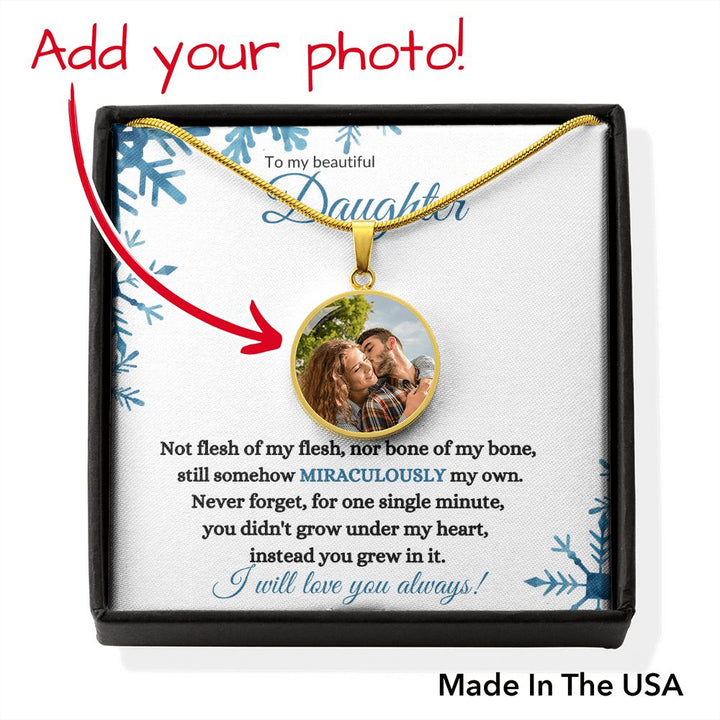 Nonbiological / Adopted Daughter(Christmas Snowflake Card) - Circle Photo Necklace - Buyer Uploads Photo